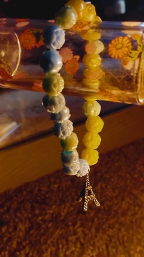 Eiffel Tower Yellow and Blue Beaded Bracelet
