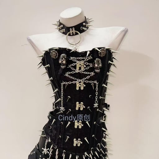 Black skull spike faux leather top